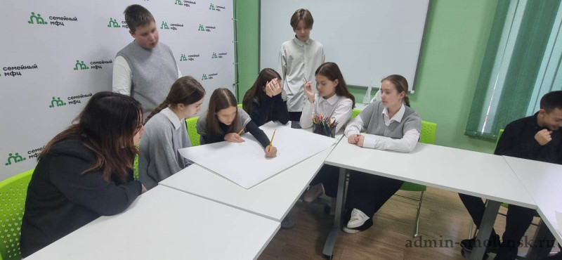 В рамках этой встречи педагоги-психологи Семейного МФЦ провели со школьниками профориентационный тренинг «Формула профессий».